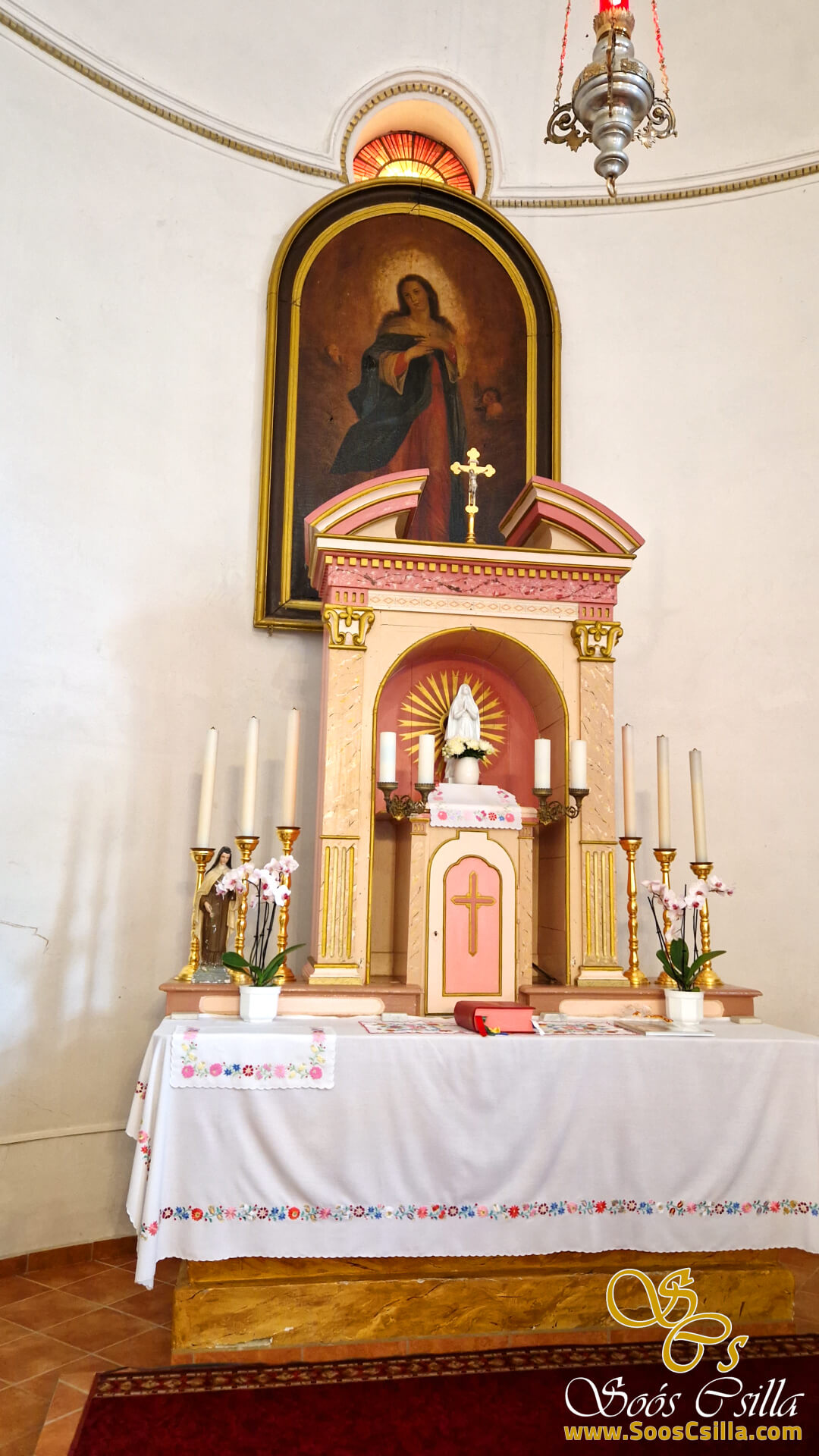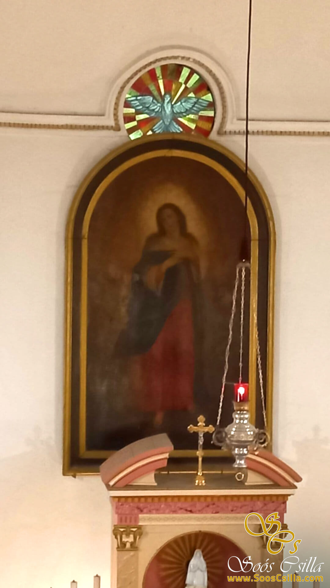 Dedinka Szigliget je malá klenotnica v kraji Veszprém na severnom brehu jazera Balaton medzi Badacsony a Keszthely. Kostol Szűz Mária s panoramatickým výhľadom na Balaton nájdete tu, pod hradom Szigliget, ktorého kostol sa v osvedčení spomína už v roku 1427. V tomto nádhernom kostole som mala možnosť vyrobiť vitráže zobrazujúce Pannu Máriu. a monogramy IHS, ako aj symbol holubice nad oltárom. Ak sa nachádzate v tejto oblasti, navštívte priamo Szigliget. Úžasná malá dedinka.