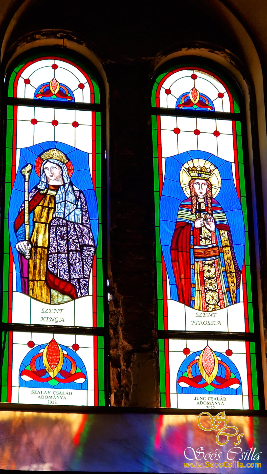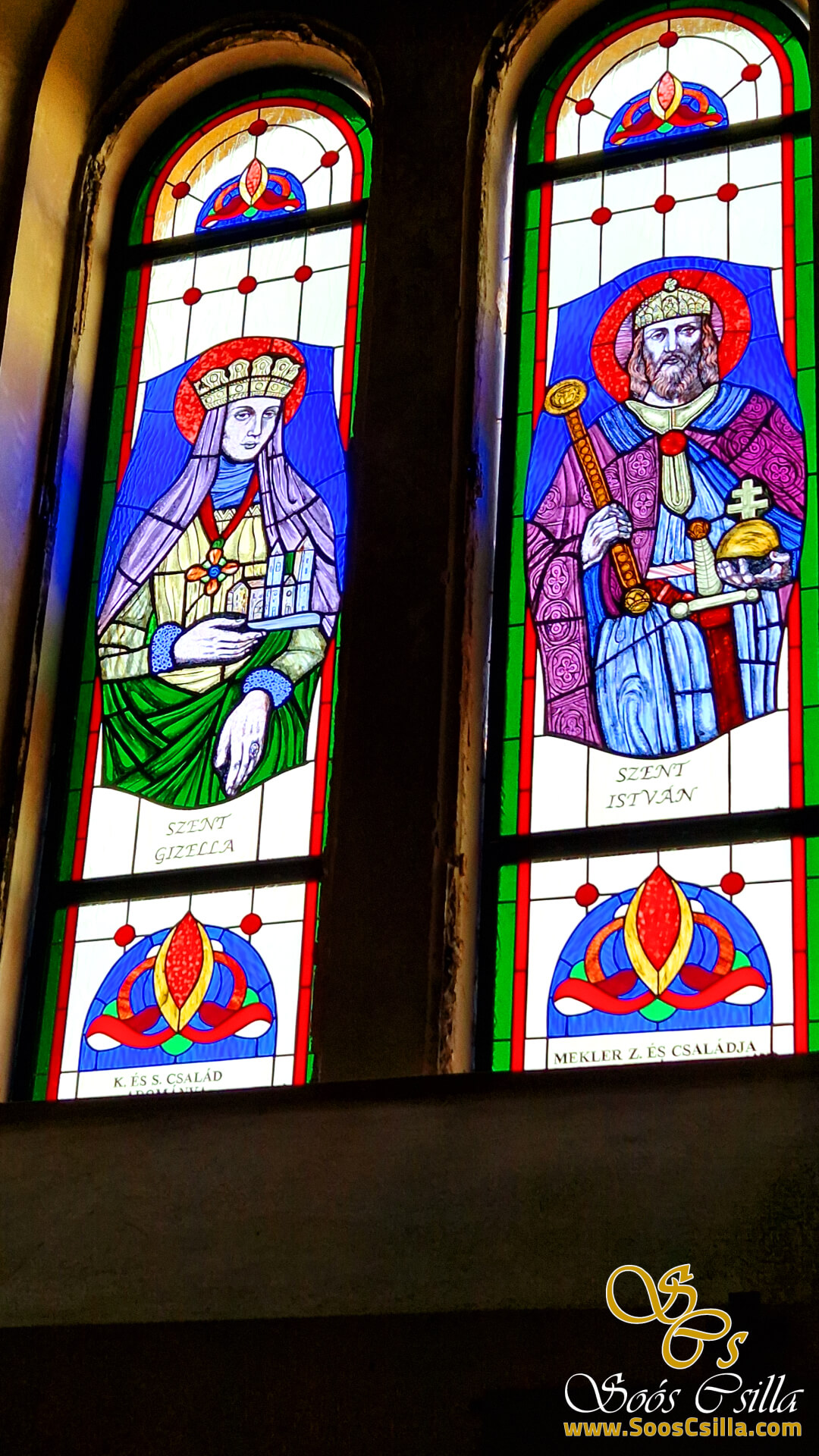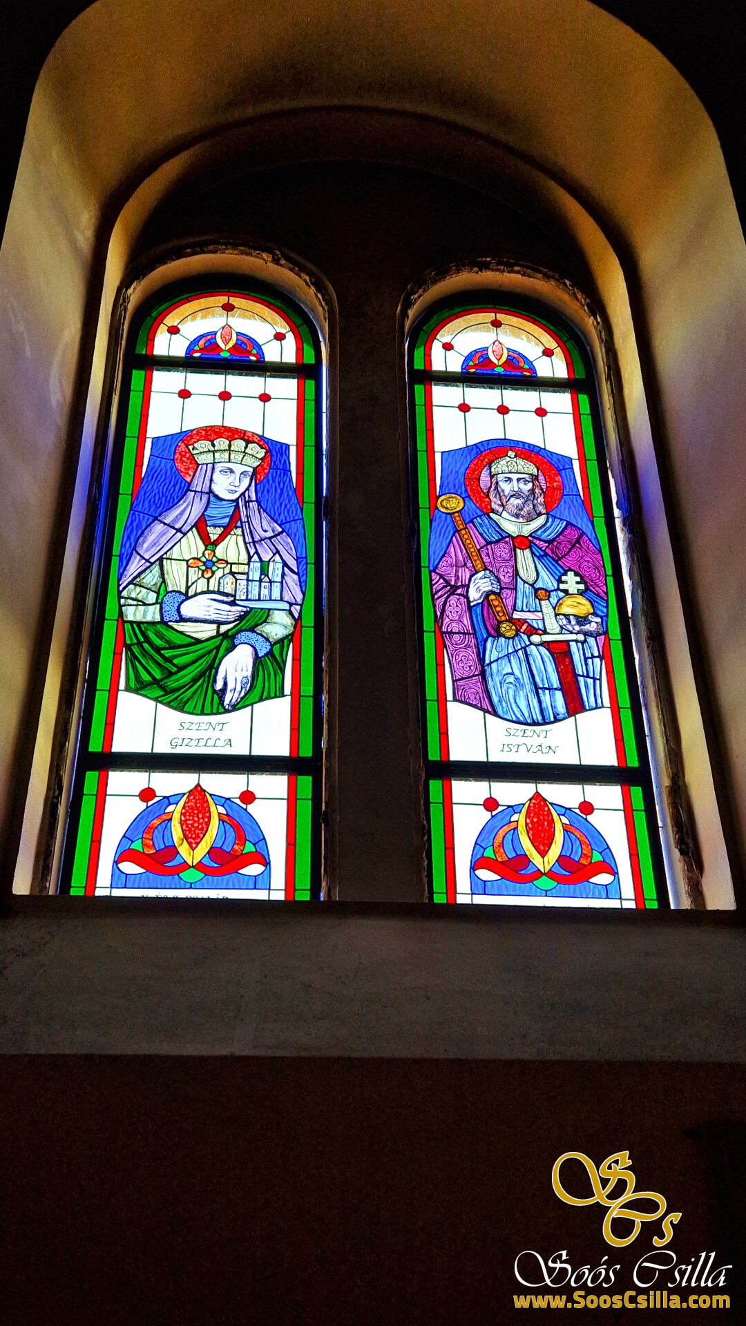 Galéria ukazuje postup inštalácie vitráží kostola Szent László vo Vespréme – chór – vitráže. Zvláštnosťou okien je umiestnenie červených konvexných skiel Muggelstein umiestnených na miestach stretnutia.