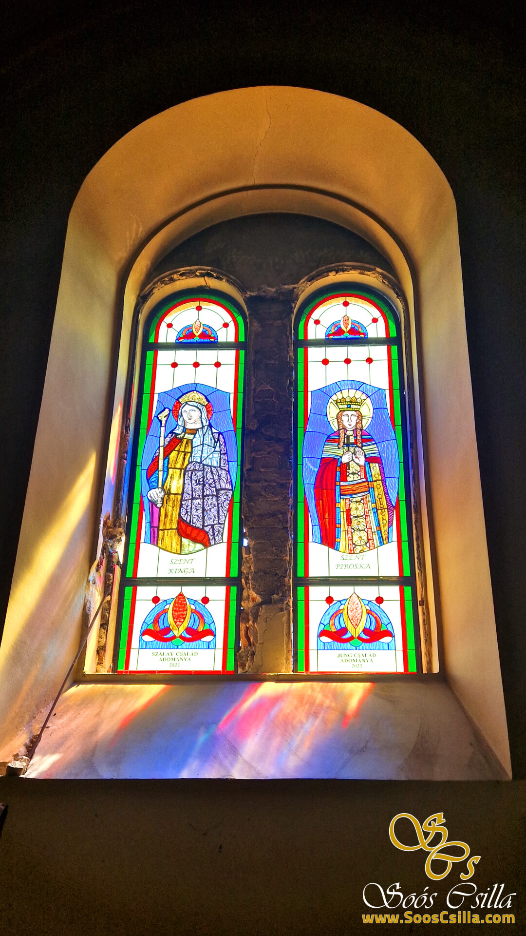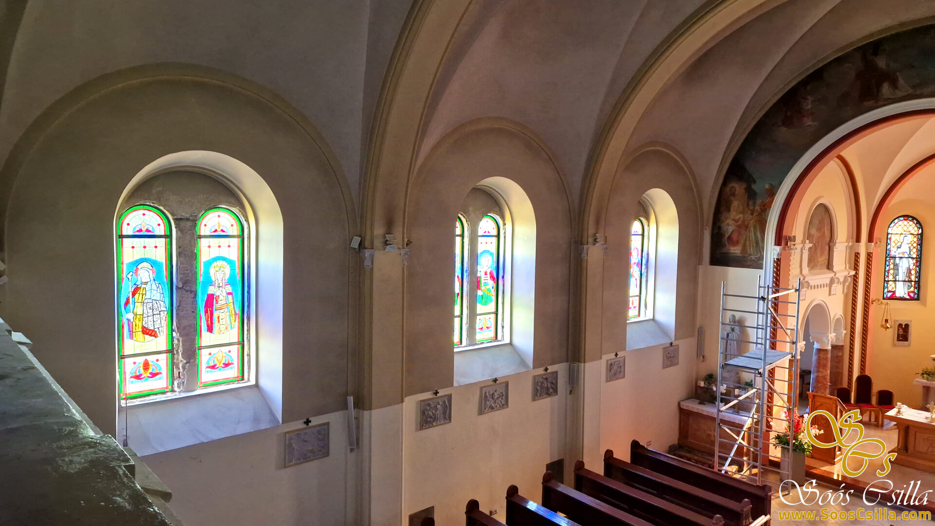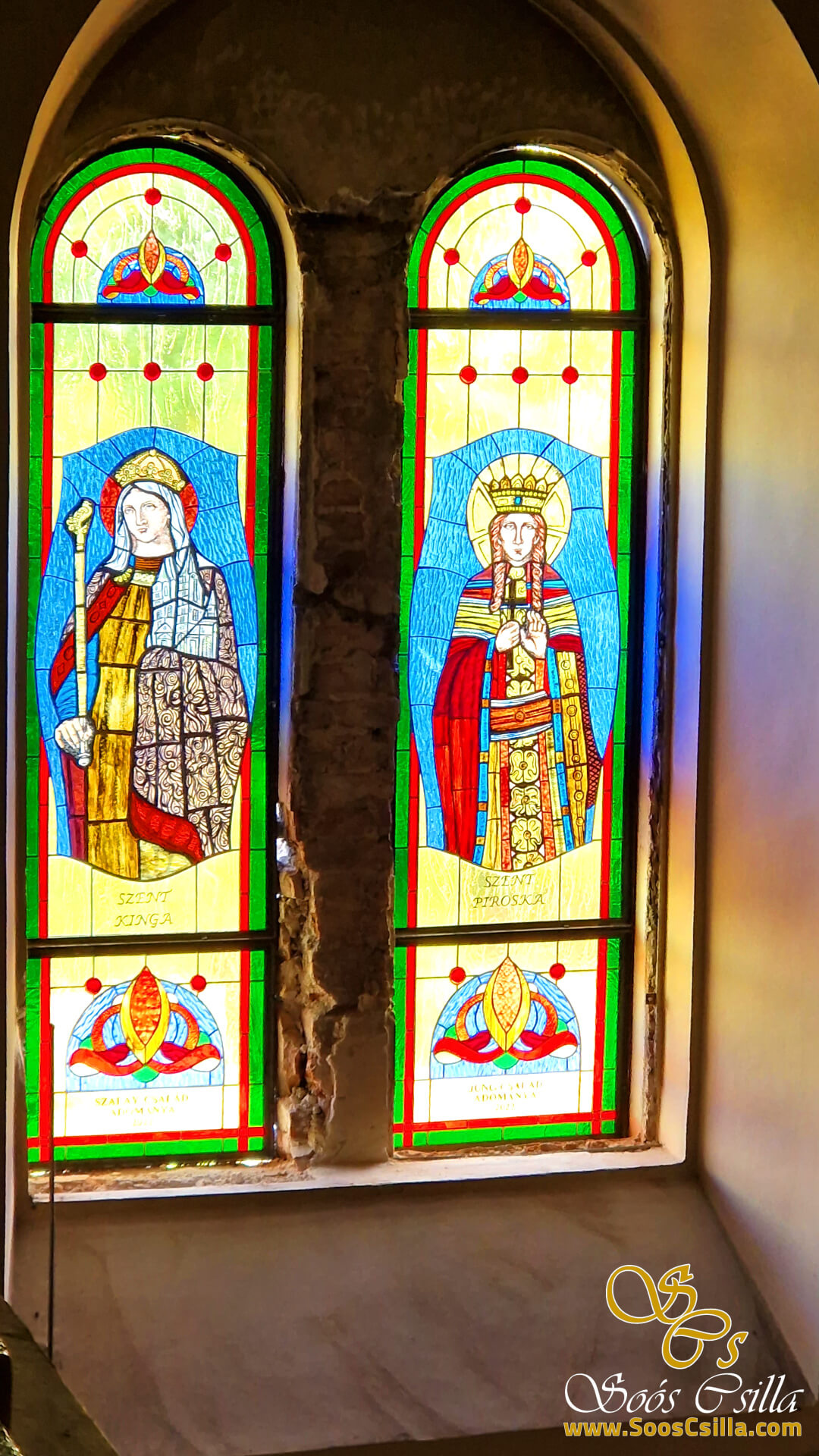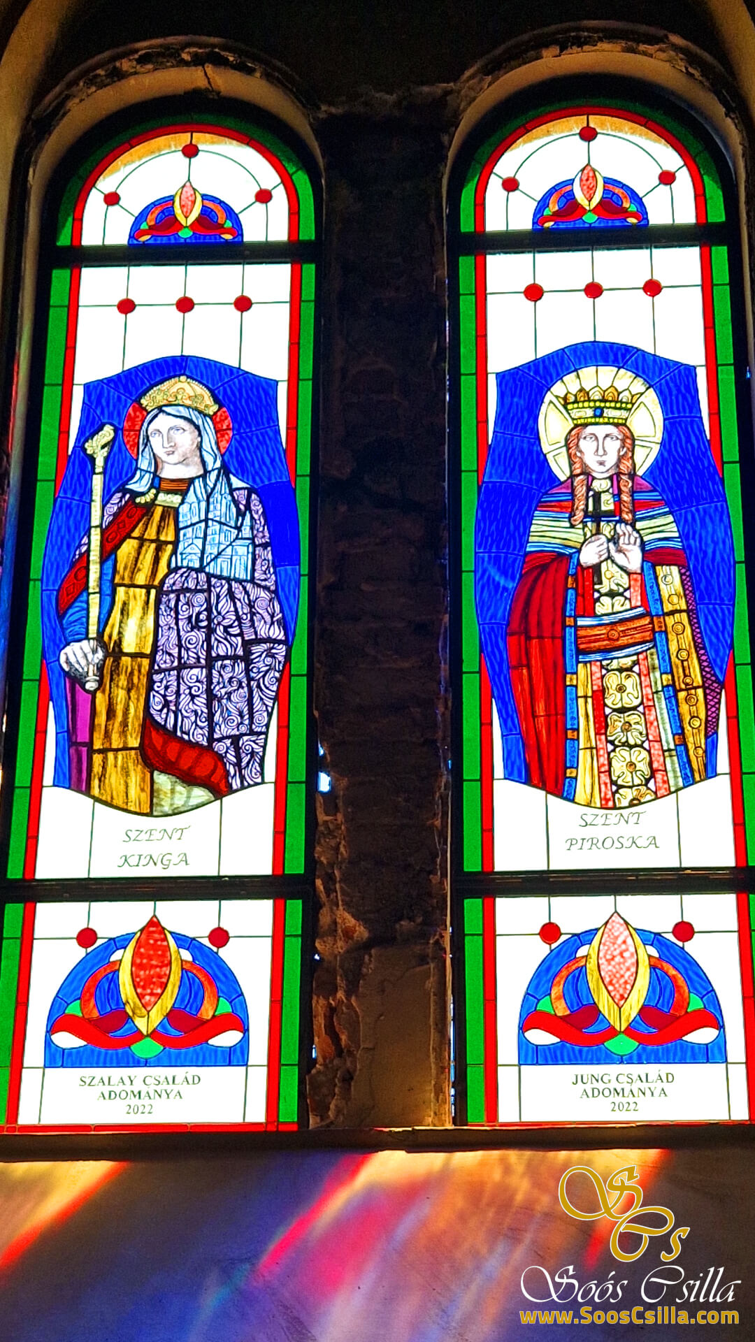 Galéria ukazuje postup inštalácie vitráží kostola Szent László vo Vespréme – chór – vitráže. Zvláštnosťou okien je umiestnenie červených konvexných skiel Muggelstein umiestnených na miestach stretnutia.