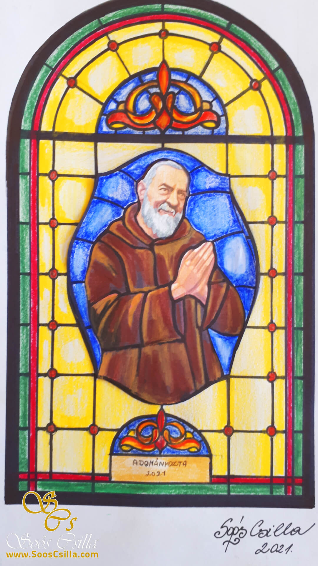 Vyrobil som vitráže pre slovenský kostol Trhová Hradská. Jedna zobrazuje Krista, zatiaľ čo druhá zobrazuje otca Pia. Páter Pio bol talianskeho pôvodu a bol známy ako zázračný muž kvôli mnohým špeciálnym udalostiam spojeným s jeho menom.